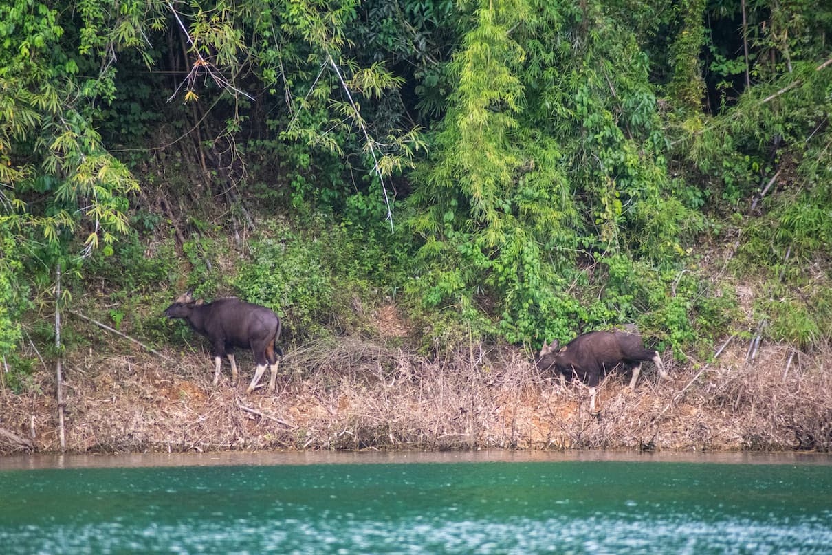 One of the most sought after Khao Sok animals is the elephant. With luck on your side, you may even have the chance to see wild elephants. You may also spot sambar deer, the highly endangered Malayan tapir, the Malayan Sun bear and the gaur (Asian bison). Many of these animals populate the jungle around the lake and very often they come to the lake to drink and bathe. This is often the best place to spot them.
