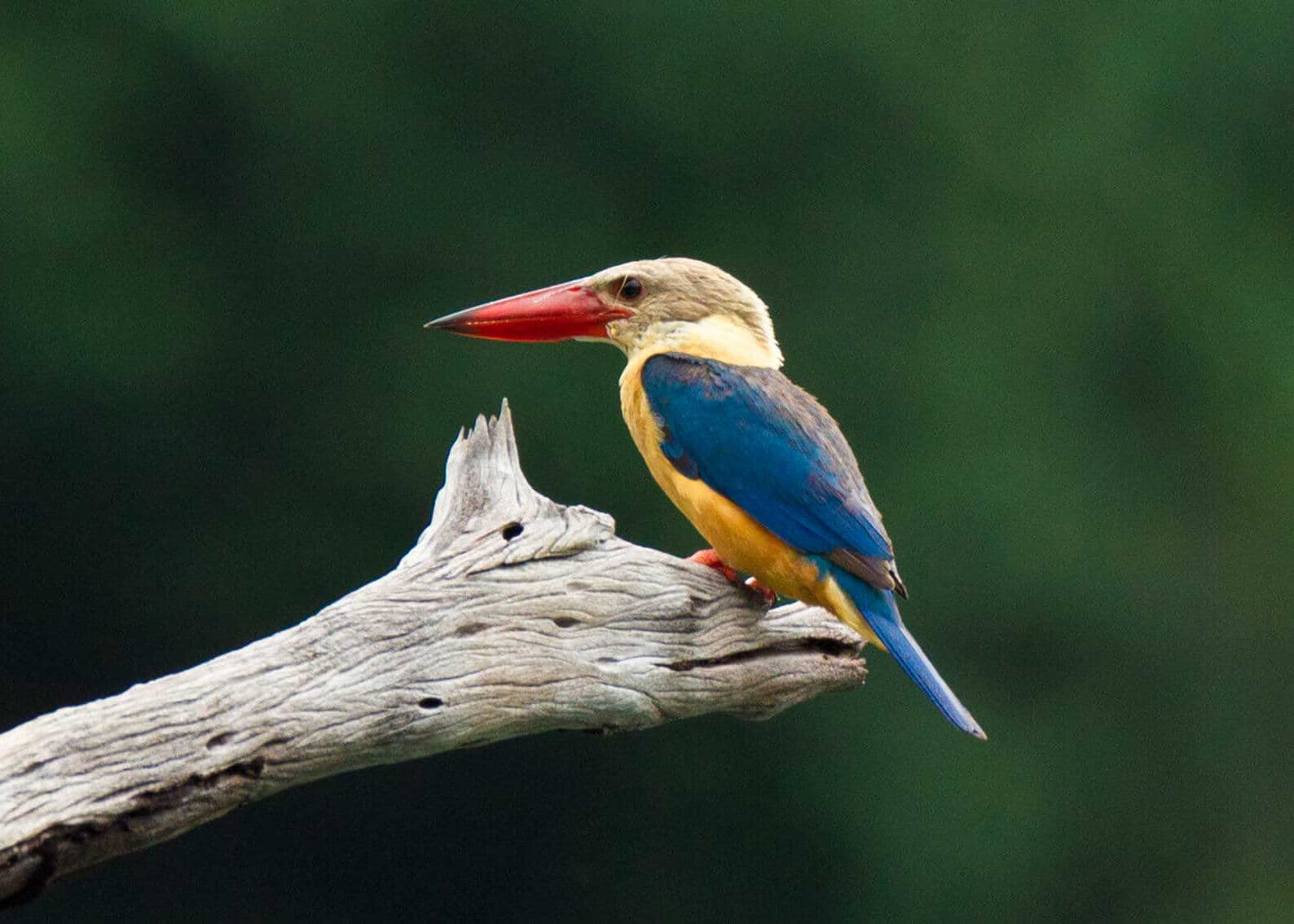 Along the riverbanks, you might spot one of Khao Sok’s 12 species of kingfisher. Whether it’s the bright blues of the common kingfisher or the rusty red of the ruddy kingfisher, these birds are expert fishers. Watch as they perch, dive, and skillfully beat their catch before swallowing it headfirst.